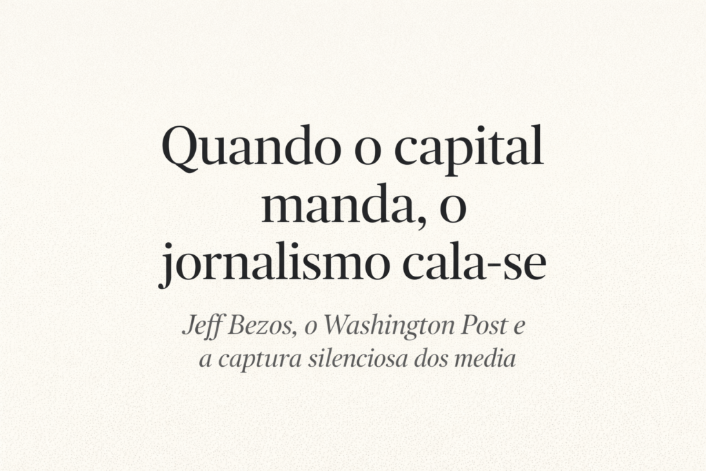 Mas este caso merece atenção especial. Não apenas pela dimensão simbólica do Post, herdeiro de uma tradição que remonta ao Watergate, mas porque revela, de forma quase pedagógica, o que acontece quando o grande capital se transforma em poder editorial.